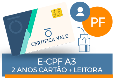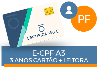 Certificado Digital Pessoa Física e-CPF A3 1 ano cartão + leitora